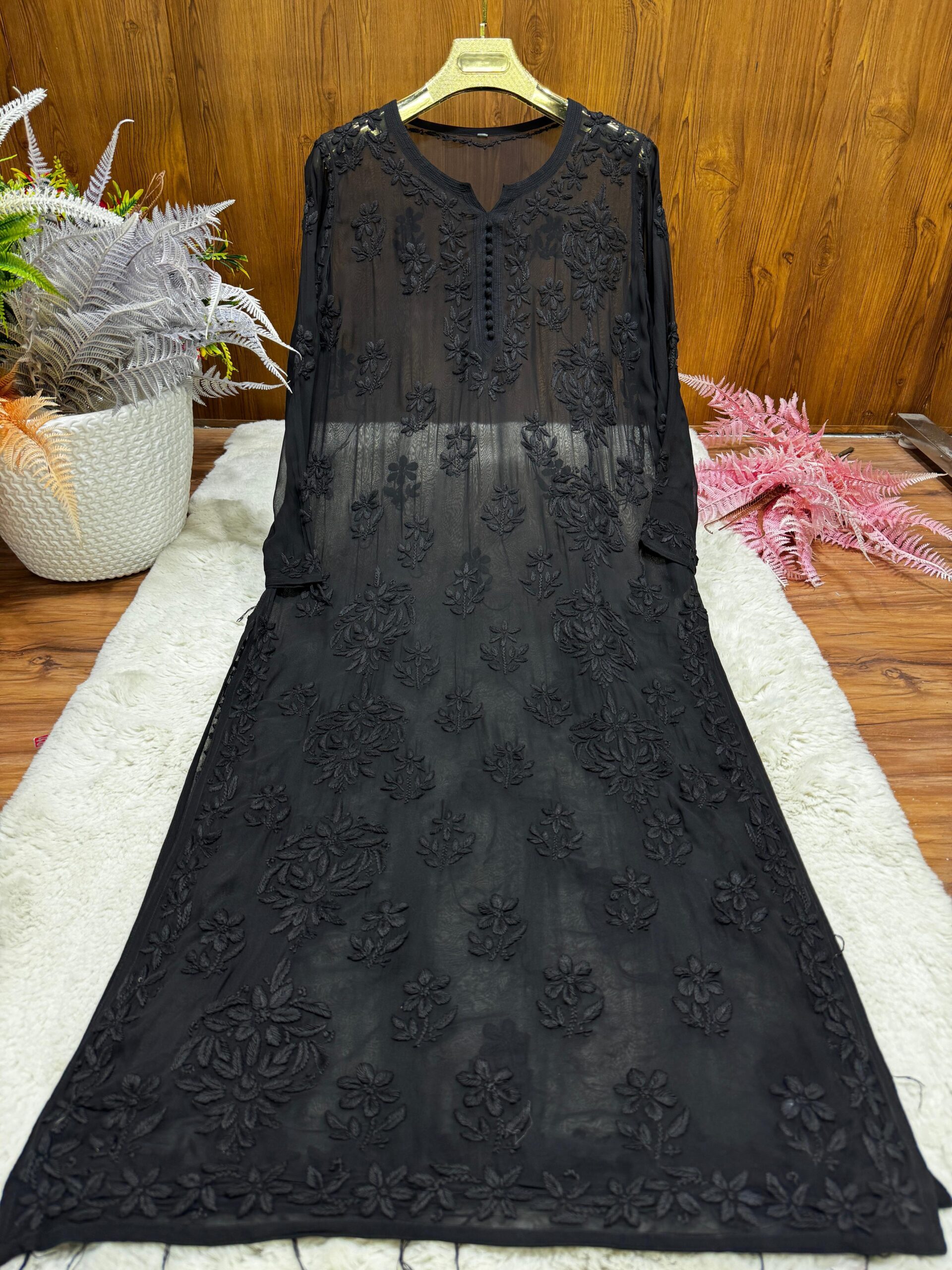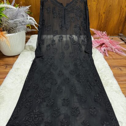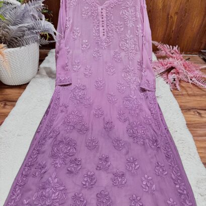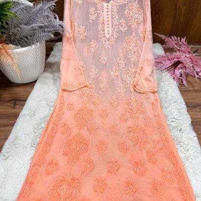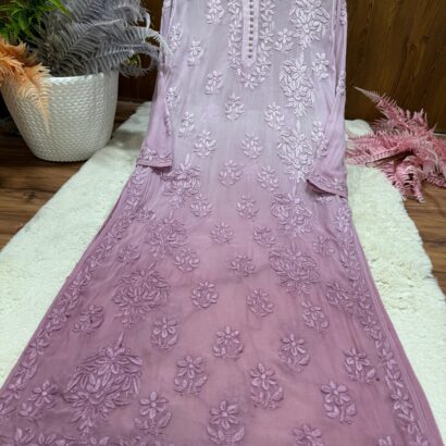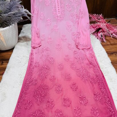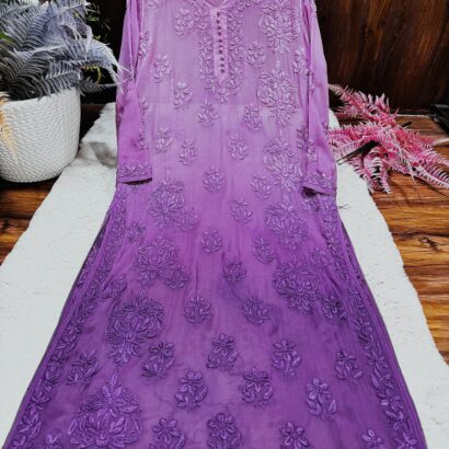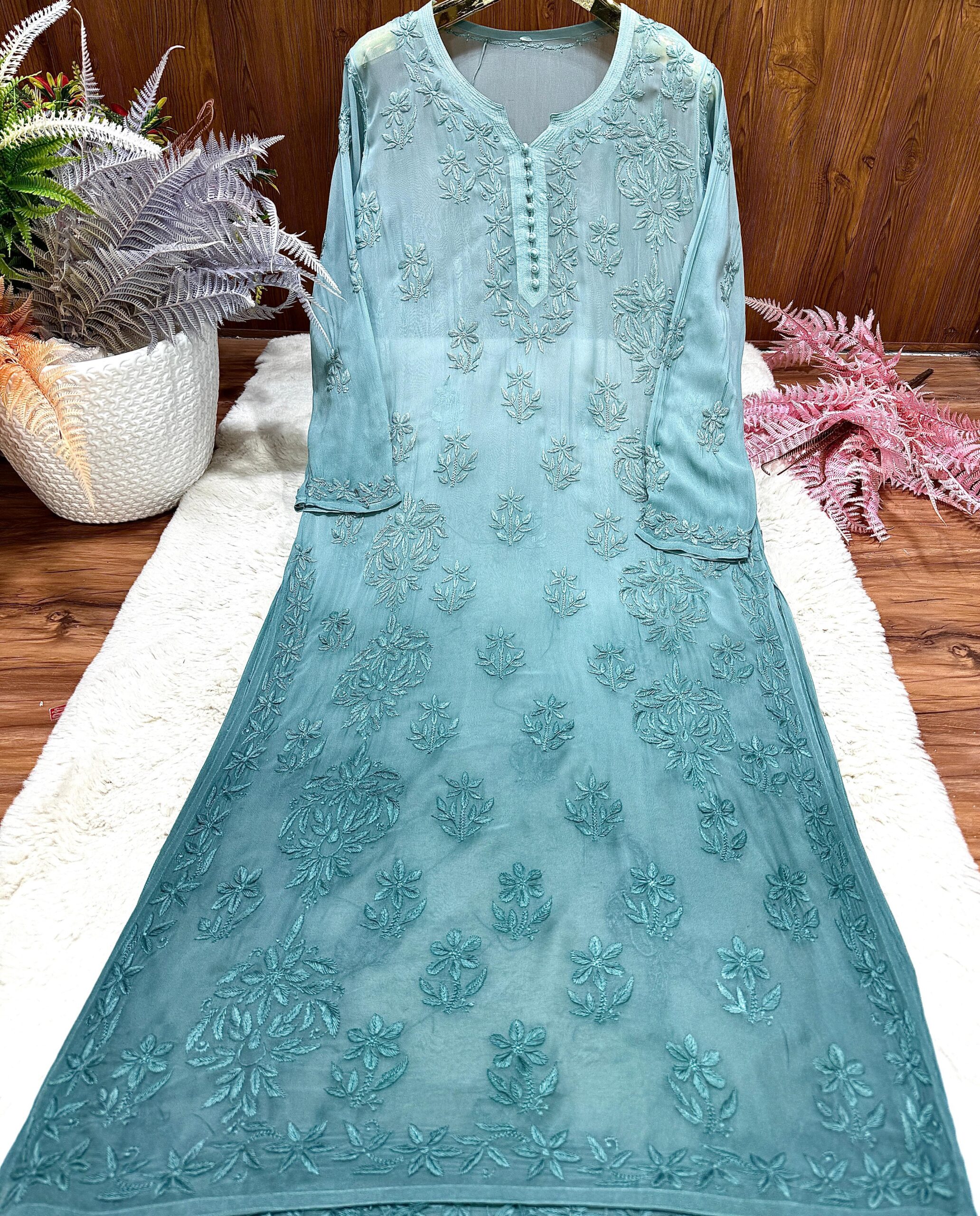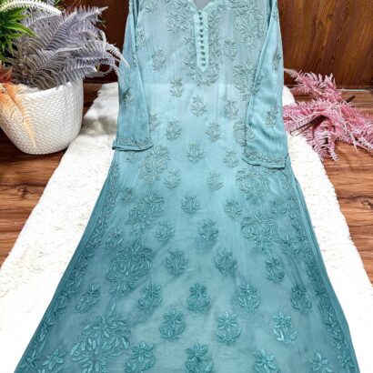 Lucknowi Chikankari Viscose 3D Ghass Patti Anchor Thread Work Kurti .