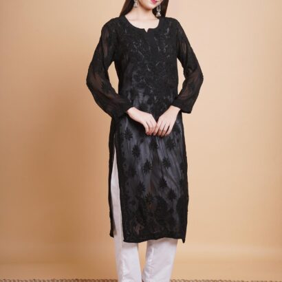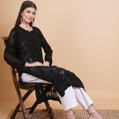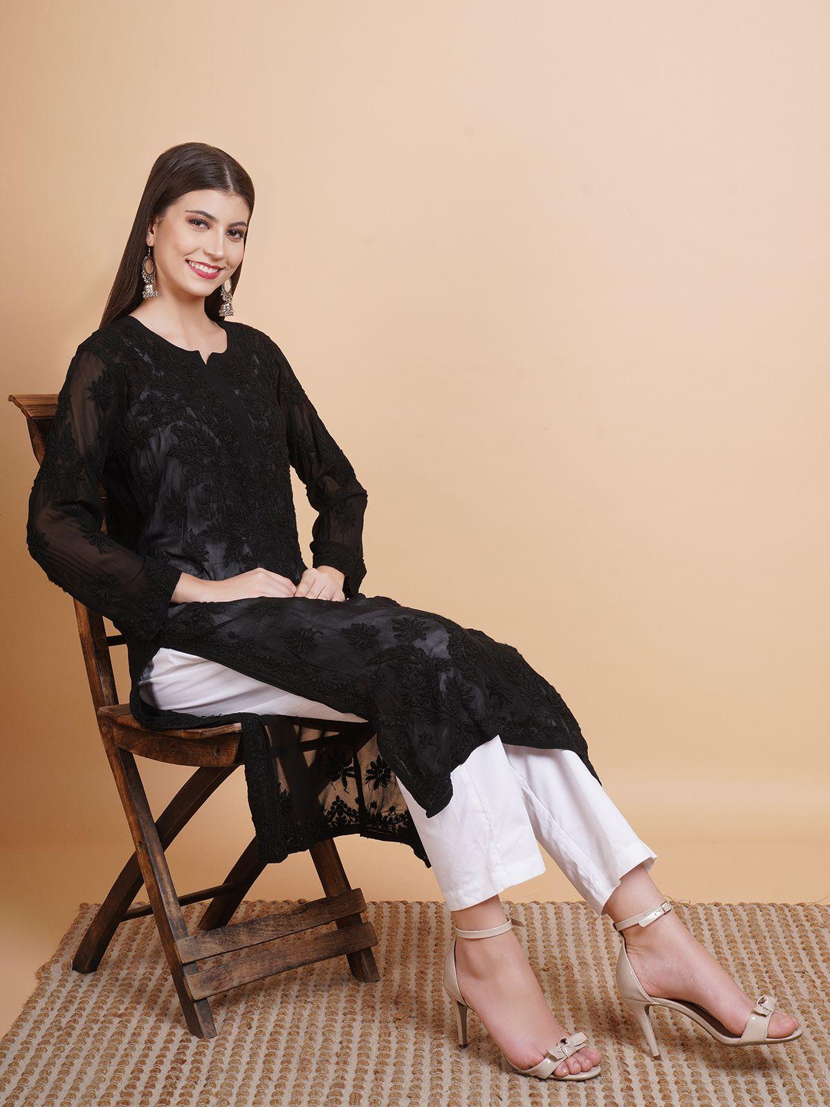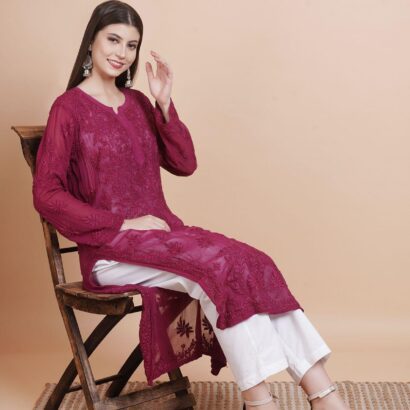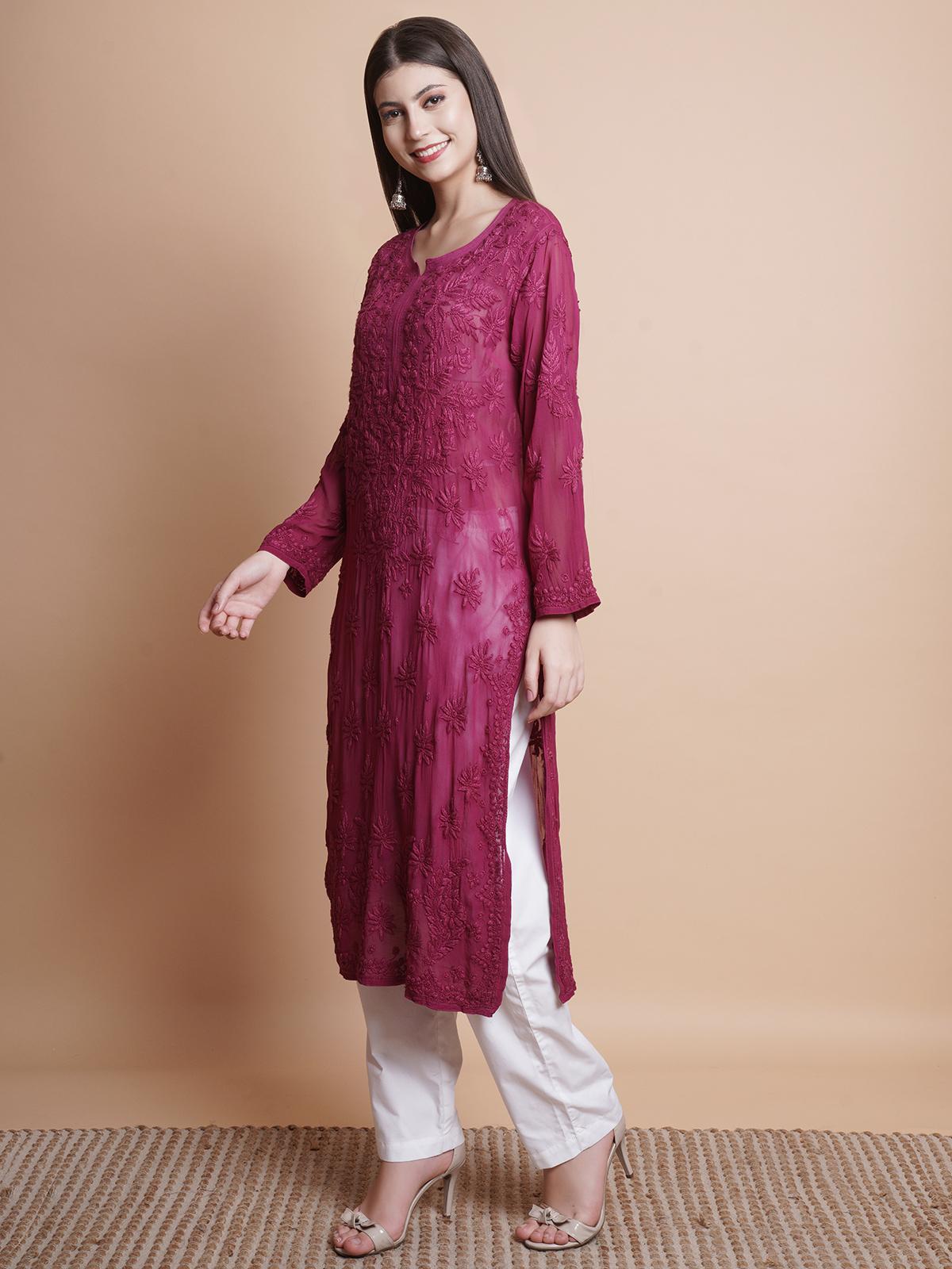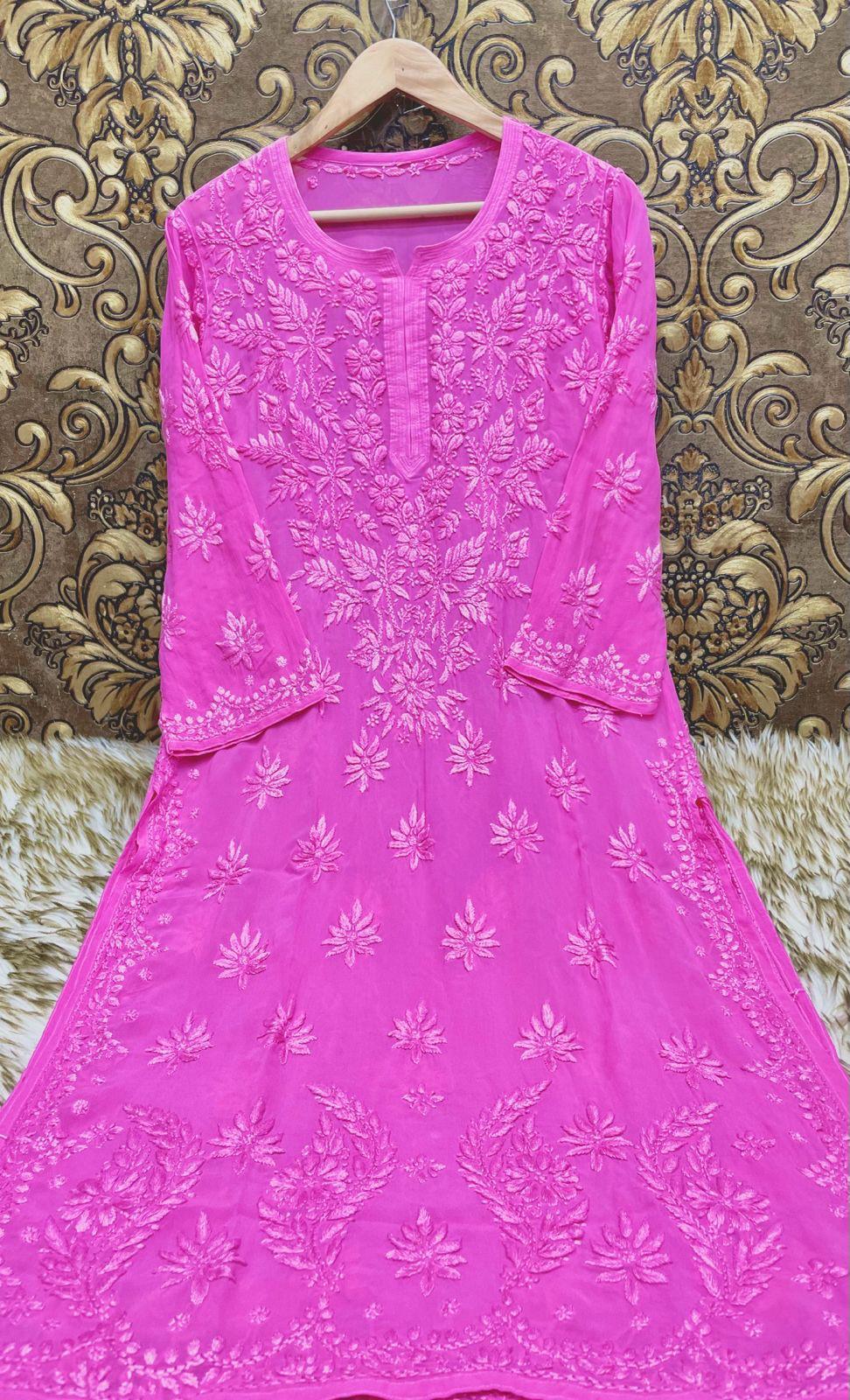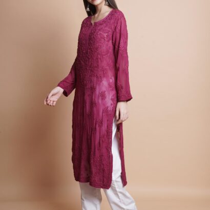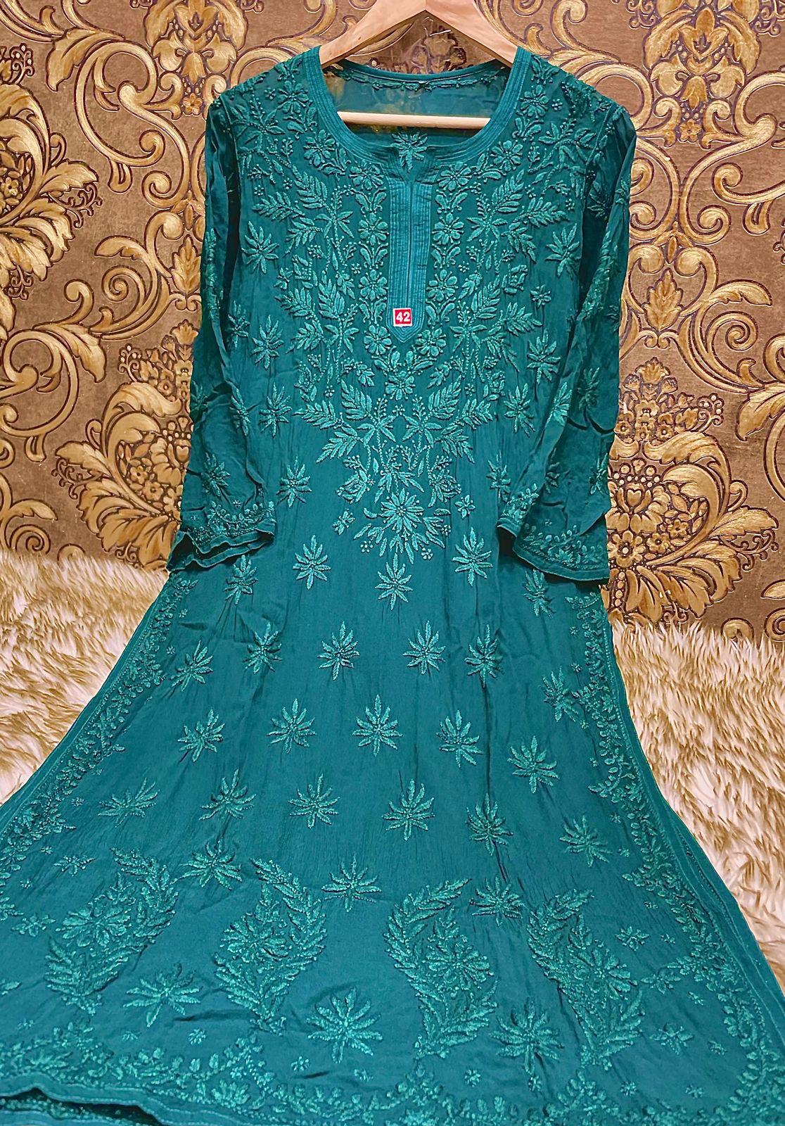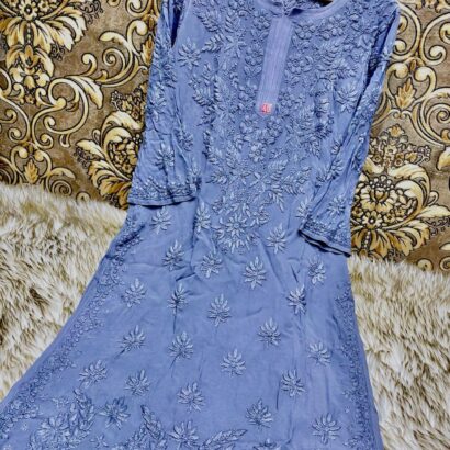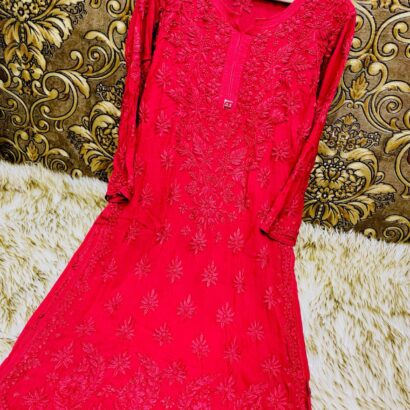 Lucknowi Chikankari Viscose 3D Work Kurti .